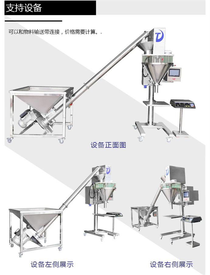 全自動粉劑灌裝機全自動粉劑灌裝機是一款集機,光,電于一體,可以自動完成瓶子定位,充填,計量等一系列工作的智能化灌裝機,該灌裝機采用觸摸屏控制,灌裝機量與灌裝速度均可調節,而且清洗方便,操作簡單,外型美