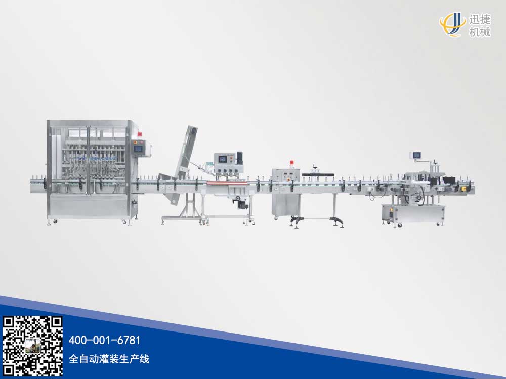 該液體灌裝灌裝生產線是迅捷機械研究人員根據客戶需求,研發的新型生產線本設備由理瓶、灌裝、旋蓋、鋁箔封口等單機組成的瓶裝生產 線。自動化程度高,操作簡便,運行穩定,有效的提高生產效率還解決了企業用工荒的問題,幫助企業實現標準化生產 。